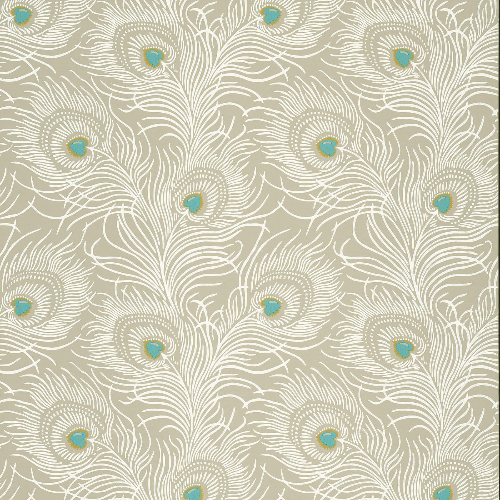Carlton House Terrace Pompon A flamboyant peacock feather design, this wallpaper was found in the attics of 18 Carlton House Terrace, a beautiful stucco-faced London town house overlooking The Mall. Originally machine-printed in green on a yellow background, the surface-printed technique used to recreate it accurately reflects the feel of the original, whilst a judicious splash of colour in the feather provides something on which to anchor