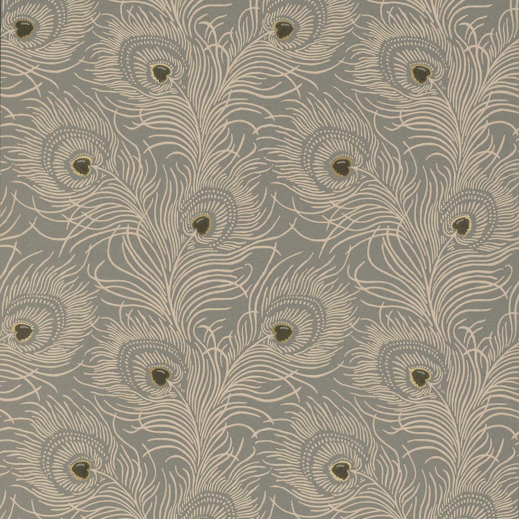 Carlton House Terrace Slate A flamboyant peacock feather design, this wallpaper was found in the attics of 18 Carlton House Terrace, a beautiful stucco-faced London town house overlooking The Mall. Originally machine-printed in green on a yellow background, the surface-printed technique used to recreate it accurately reflects the feel of the original, whilst a judicious splash of colour in the feather provides something on which to anchor.