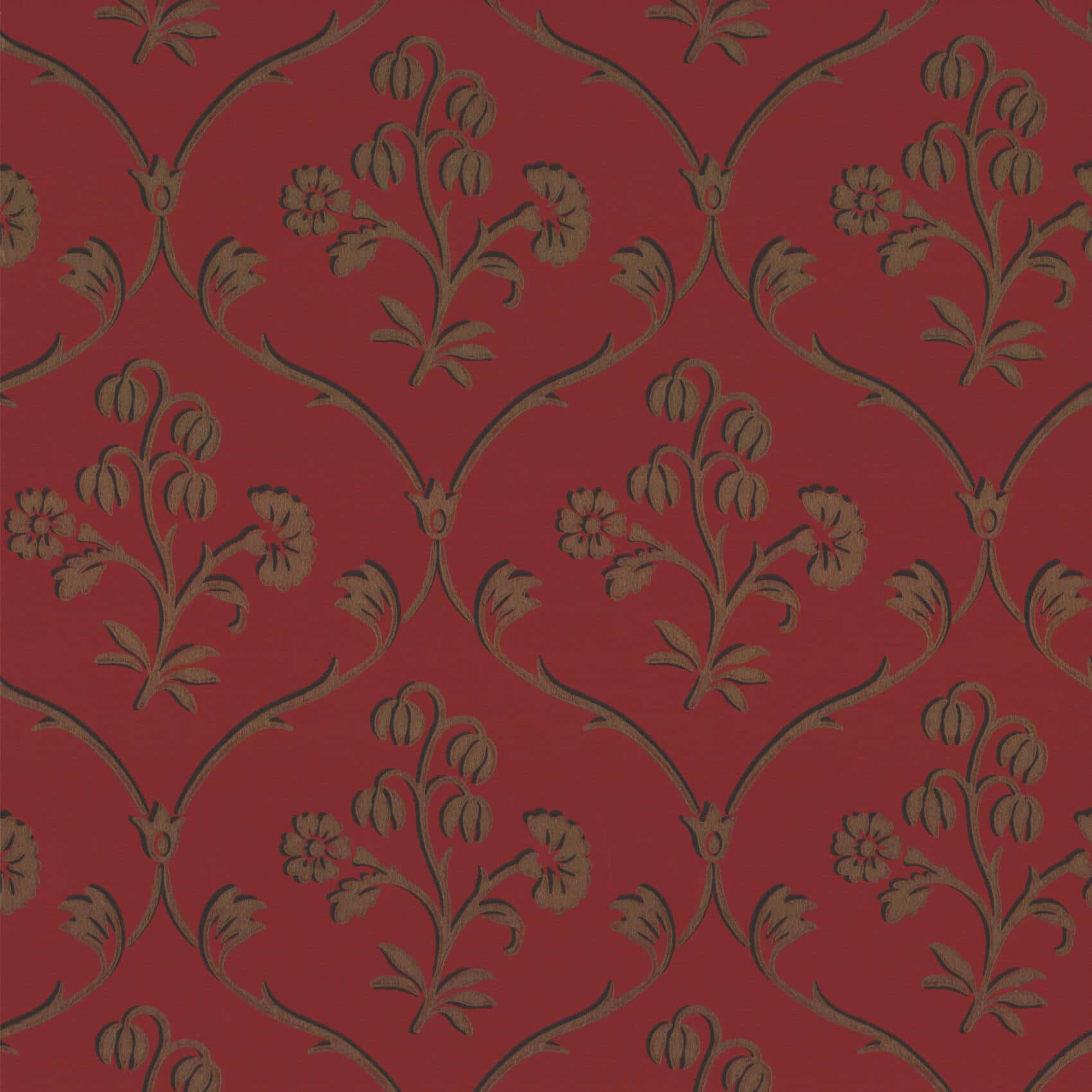 Cranford Cherry Gold Little Greene Wallpaper This mid-18th century paper, found in Cranford, Middlesex, has a yellow floral ogee motif printed on to thick, hand-made rag paper. It is unusual because yellow, although a popular colour, was expensive and prone to fading. It was manufactured using ‘slip-printing’, a technique to make the paper appear more expensive than it really was due to its ‘shadow’ effect, which was achieved economically by using the same block to print two different colour’s.
